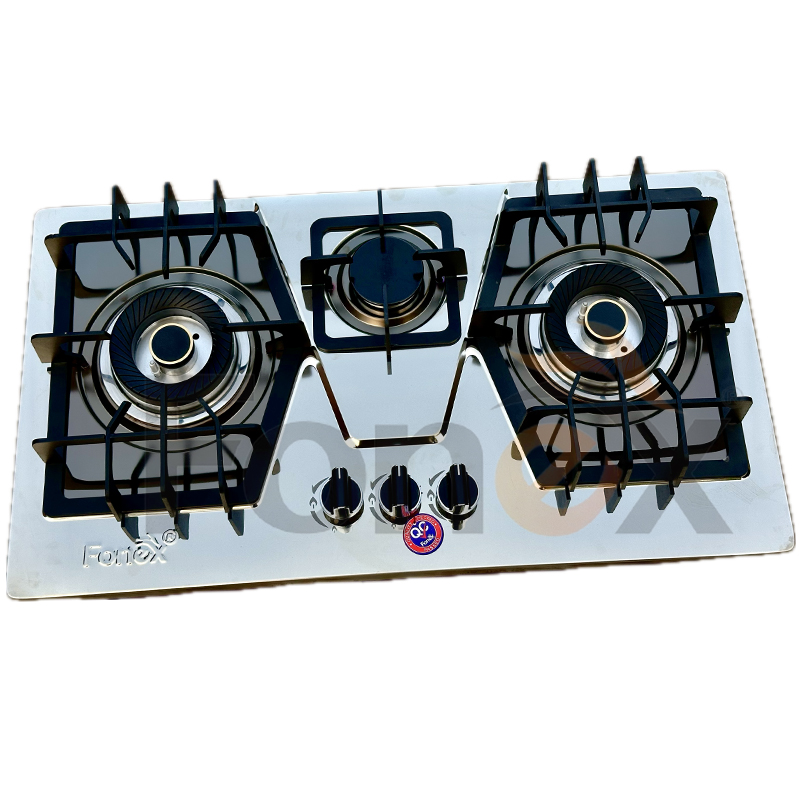 Auto Ignition. 3 Burner Hob. Stainless Steel Panel. EPS CONCEALED Design Burners.